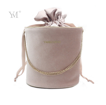 Personalized Barrel Shaped Velvet Travel Cosmetic Bag with Chain