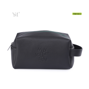 2025 OEM Black Travel Small Leather Makeup Bag Wholesale Toiletry Bags with Wrist